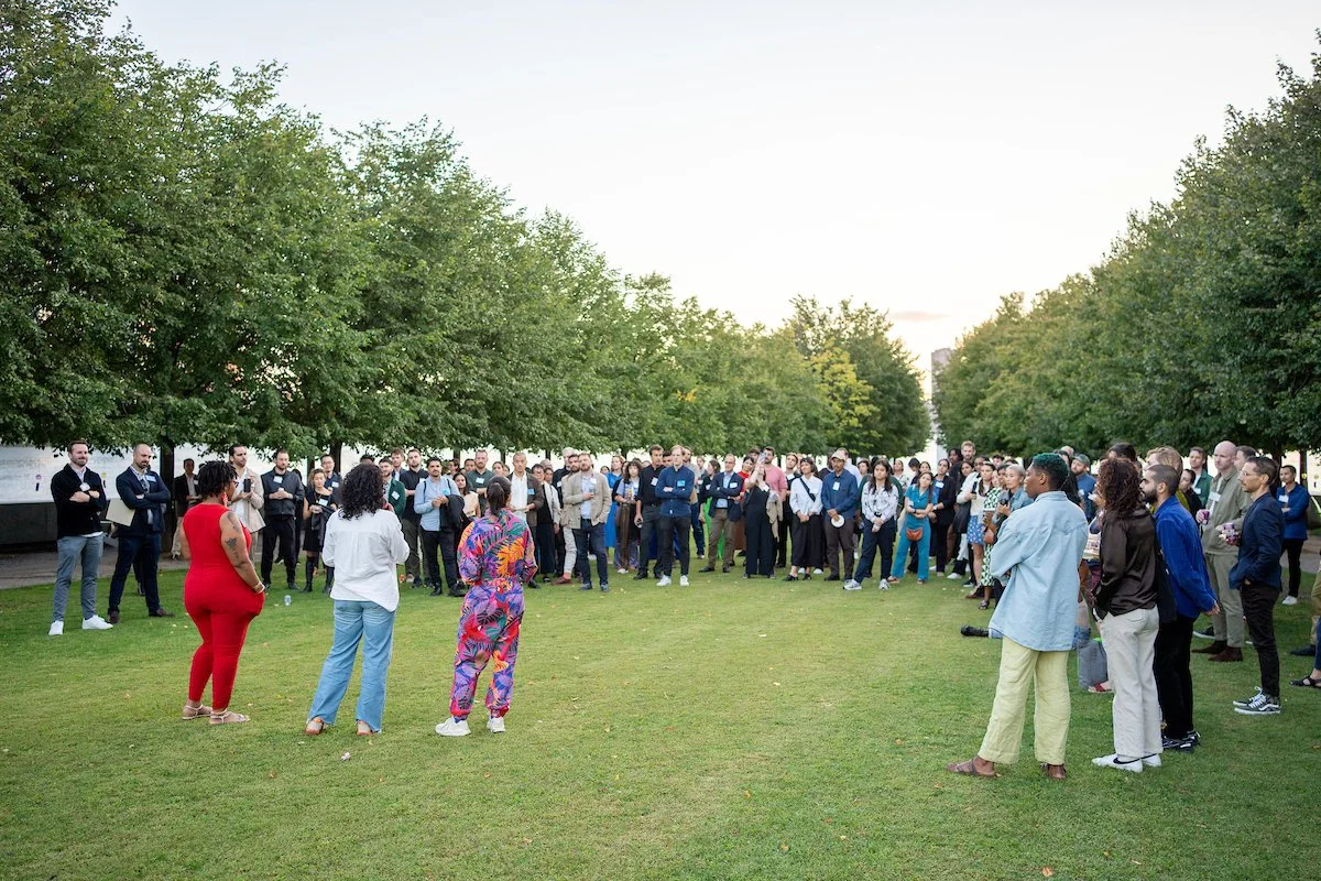 I invited 80 participants to hang Japanese wind chimes (furin) and write how they advance freedom today—shifting from past injustice to present action. The collective sound became the soundtrack for a spoken word performance exploring our non-linear pursuit of freedom.