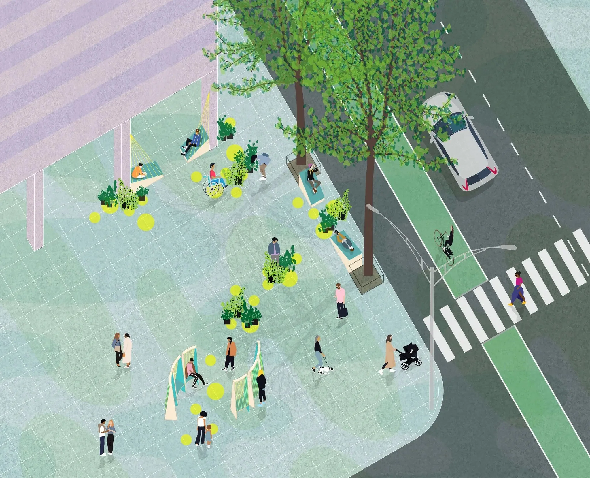 The project is creating the first systematic framework for neuroinclusive public space design in NYC. We developed user-centered assessment tools and physical prototypes that more designers can use to create neuroinclusive spaces at scale. Pilot installations will inform policy recommendations for citywide implementation.
